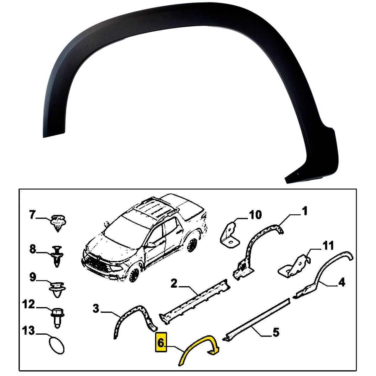 MOLDURA PARA-LAMA DIANTEIRO LADO ESQUERDO ORIGINAL FIAT TORO 2016 A 2023 – LADO MOTORISTA