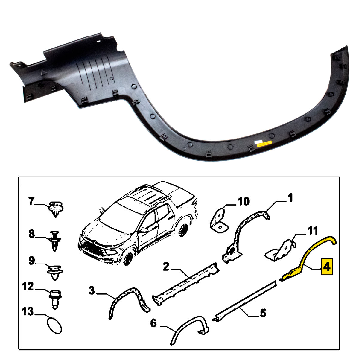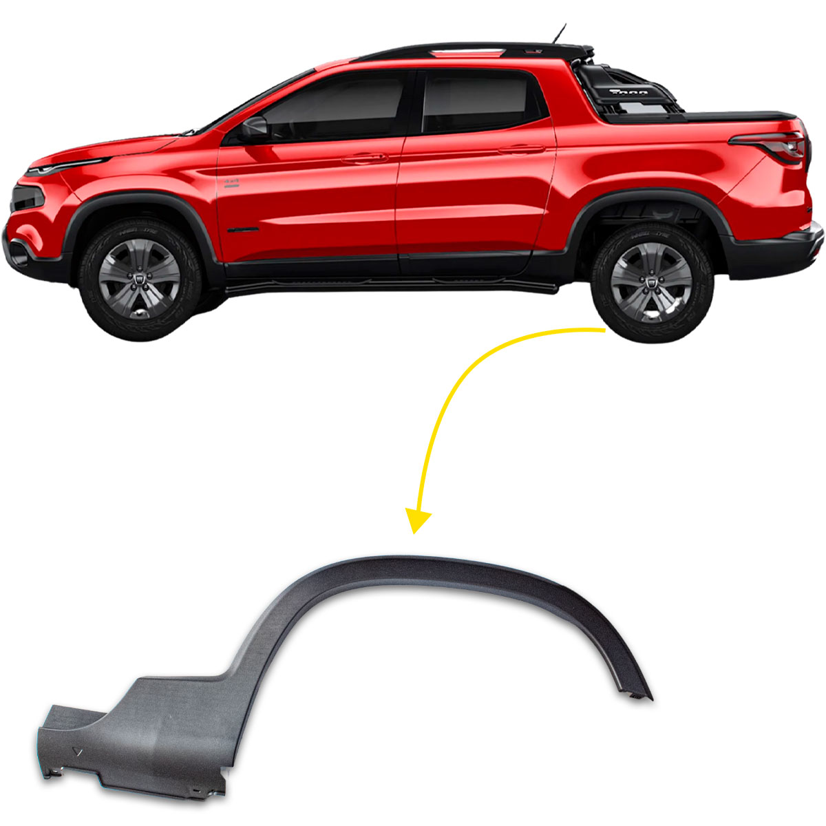MOLDURA PARALAMA TRASEIRO ESQUERDO ORIGINAL FIAT TORO 2016 A 2023 – LADO MOTORISTA TRASEIRO